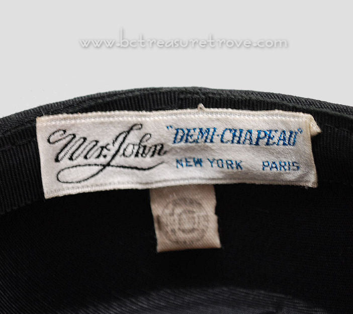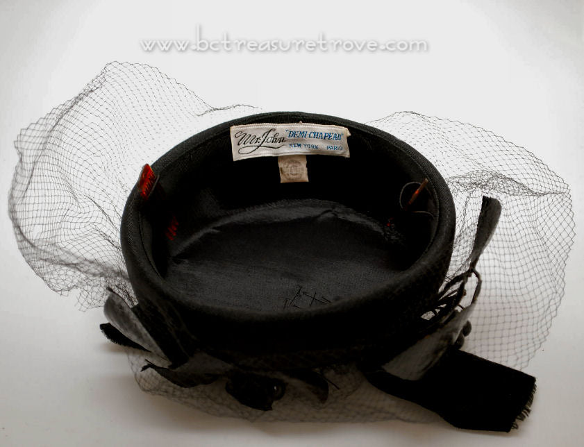 Vintage Hat Mr. John Demi Chapeau New York Paris Black with Veil 1950s